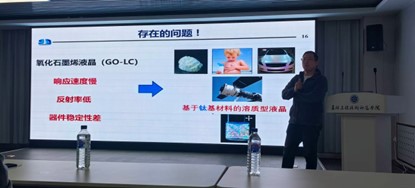 在报告中,沈田子教授讲座内容包括基于无机层状材料(如石墨烯)的新型显示技术;材料超薄柔性,突破传统显示形态限制;卓越光电性能,实现高画质与低能耗;赋能未来柔性及透明显示应用新场景。主要讲解二维纳米液晶材料的低功耗显示器件及裸眼3D成像的相关研究,以氧化石墨烯液晶-光子晶体为例,介绍了二维纳米液晶材料的合成及相关性能测试情况,并对裸眼3D相关研究进展及对应仪器要求、应用场景进行分析。与此同时,沈教授对新型无机层状材料、有机液晶材料的合作开发、应用及产业化提出设想,为下一步深入合作创造可能,并对未来化学合成专业本科及研究生等不同层次学生培养做出规划。最后,沈田子教授详细解答了与会人员提出的问题,并与研究人员进行了深入的学术讨论。